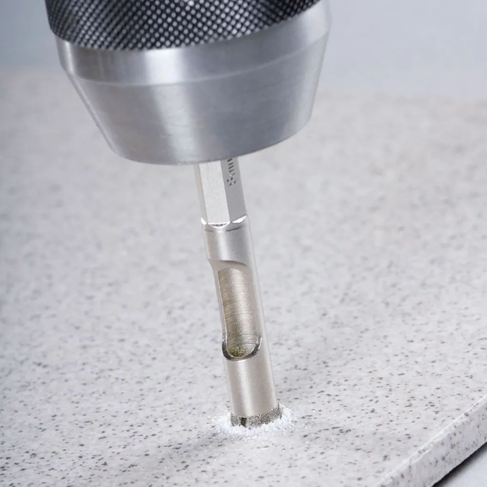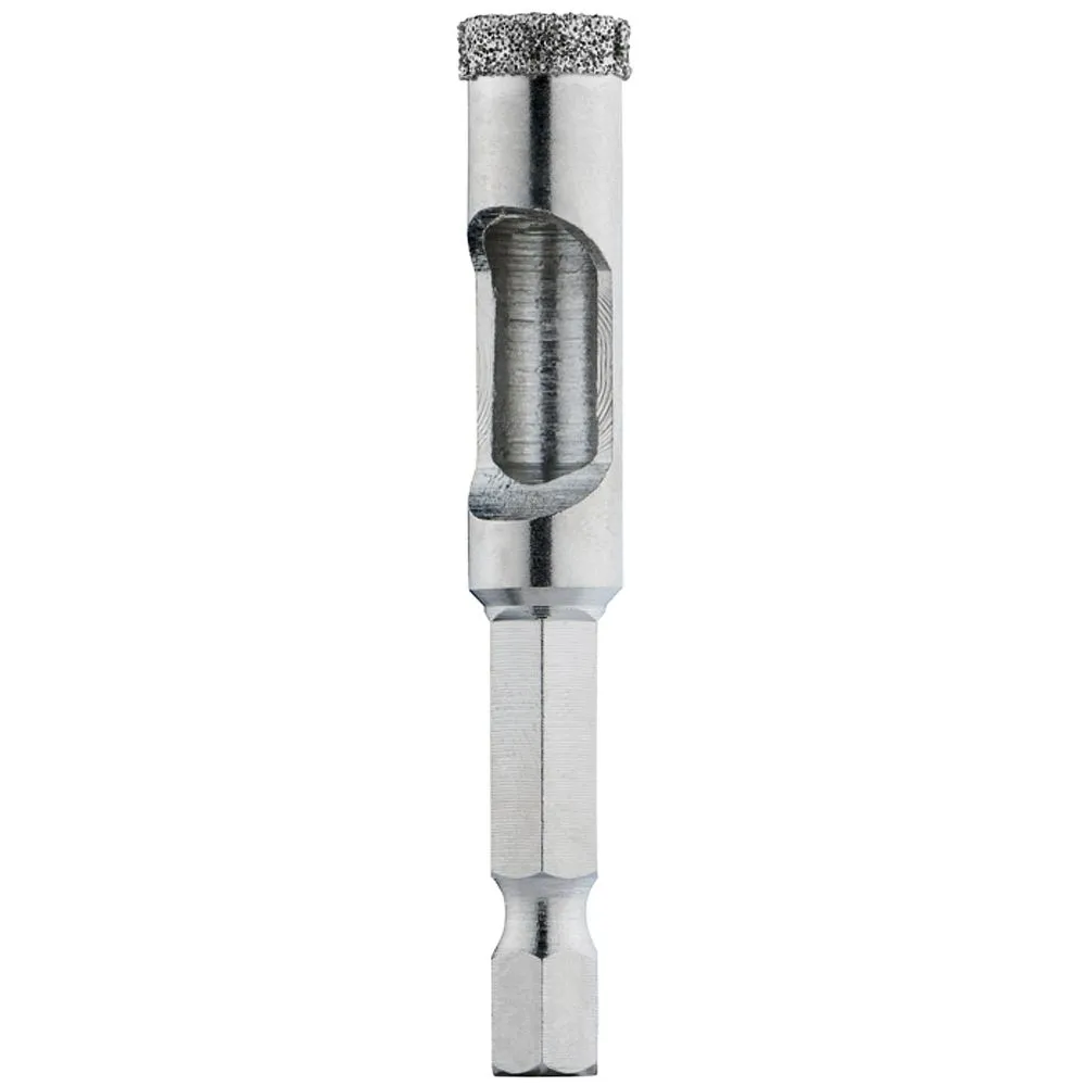 - Punta con recubrimiento de diamante, para perforar hasta los materiales más duros, como, tejas extremadamente duras, mármol, granito, vidrio y porcelana.