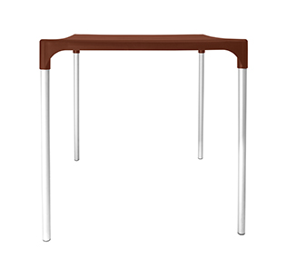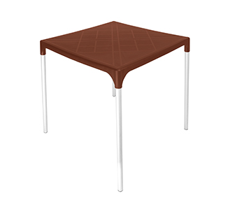 - Mesa con cubierta plástica y patas de aluminio de alta resistencia y durabilidad.