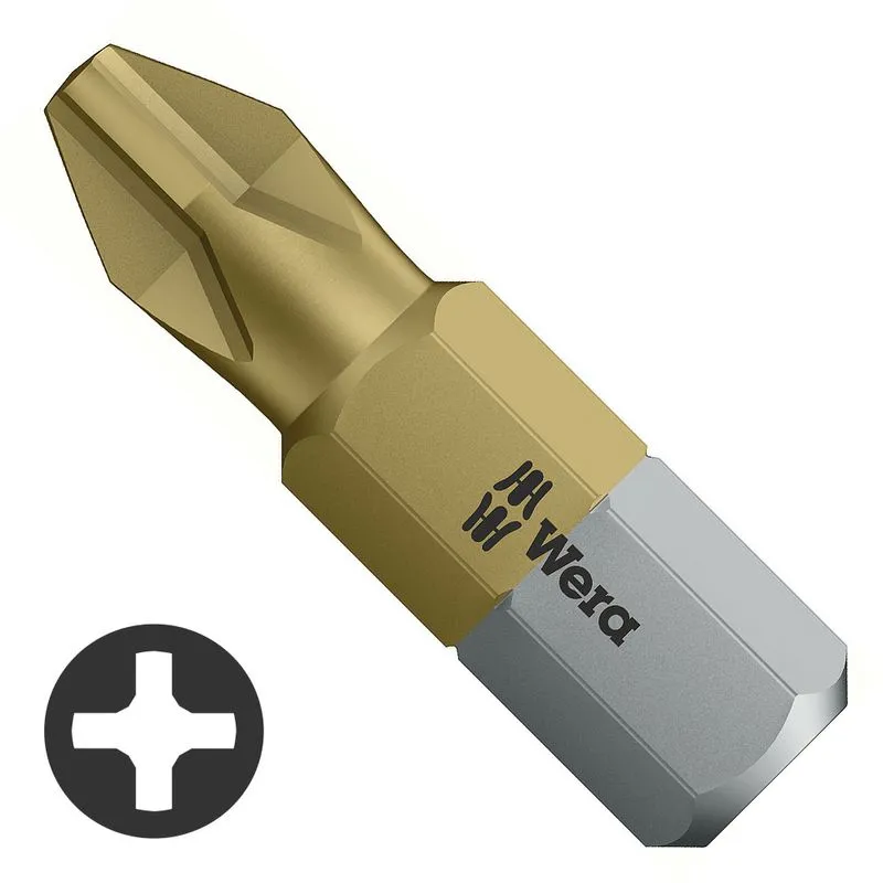 Puntas de alta calidad para tornillos Phillips. Con un recubrimiento extremamente duro de nitruro de titanio (TiN) para que sean capaces de aguantar cargas permanentes como, por ejemplo, atornillamientos de serie. Hexagonal de 1/4″, adecuado para porta-puntas según la norma DIN ISO 1173-D 6,3.