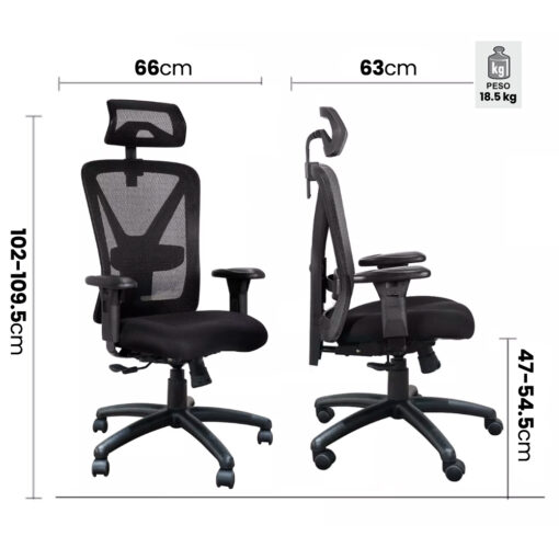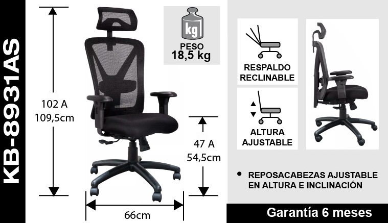 - Reposacabezas: Reposacabezas de malla fabricado en PA, regulables en altura y ángulo